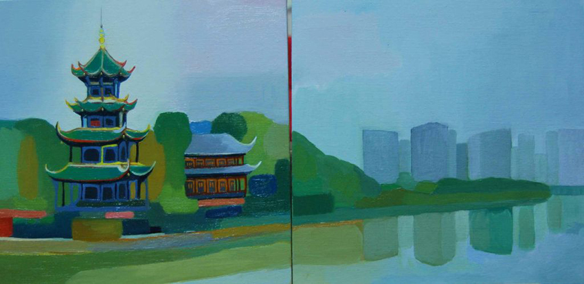This diptych was painted in Chengdu, China.