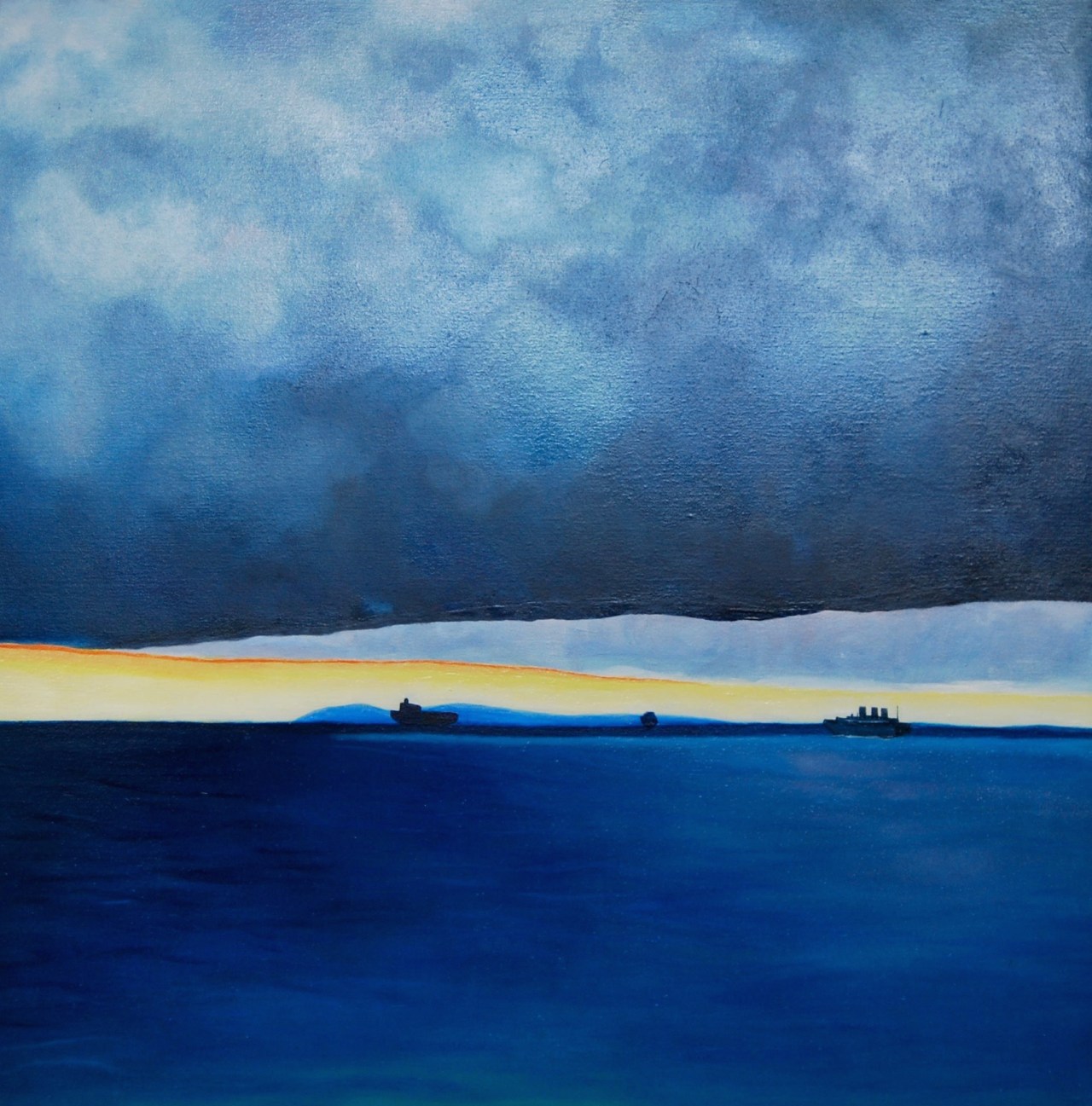 I painted this with a brooding sky and sea, looking across to Rottnest in the late afternoon.