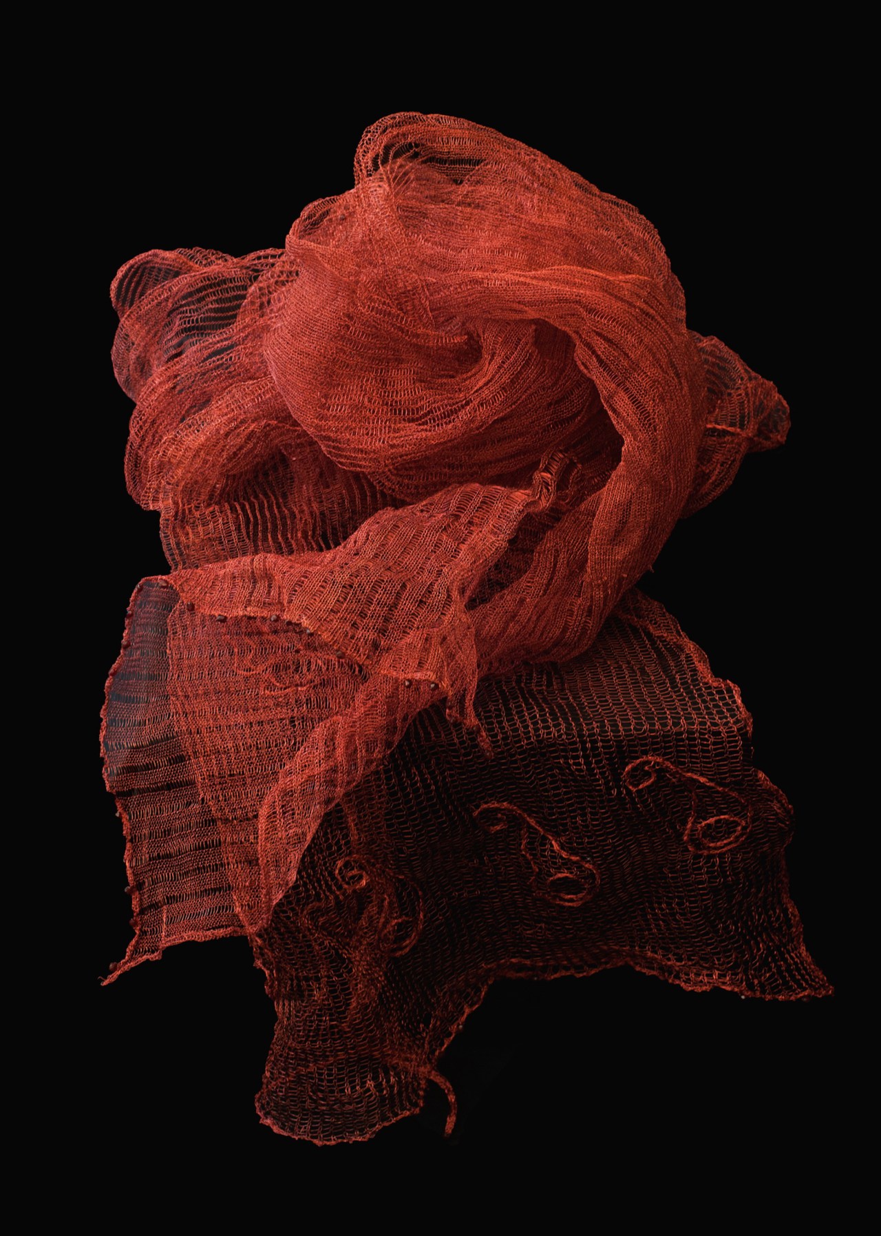 This is created from knitted copper wire, knitted on an old 1960’s knitting machine with much patience and delight at the delicate yet strong fabric.
