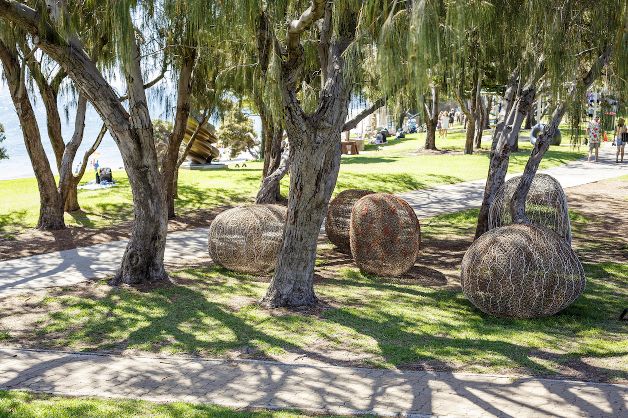 Looking through the sculptures they are created from recycled fencing wire sourced from the wheatbelt of W.A. sourced from the original Rabbit Proof Fence. The sculptures also consist of another layer of crocheted copper wire and twisted armiture wire.
